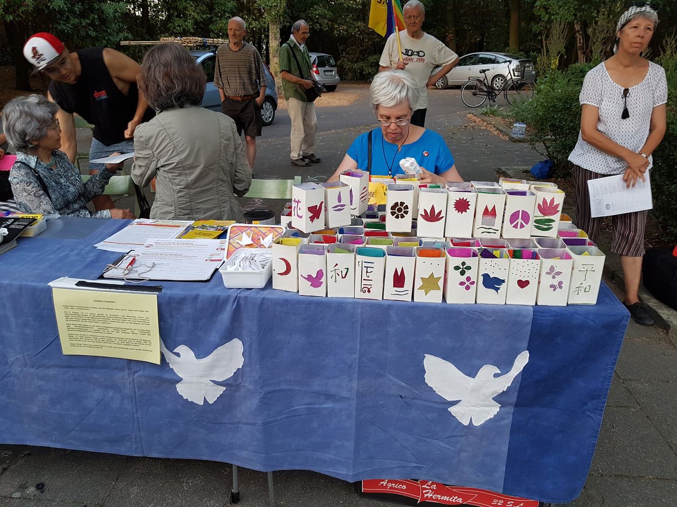 Die Einweihung erfolgte am 7. August 2004 mit einem großen Fest im Museum für Ostasiatische Kunst und auf den Parkwiesen. Der Kölner Oberbürgermeister war vertreten durch die Bürgermeisterin Renate Canisius. Die Einweihung wurde von vielen Kölnern und Friedensfreunden aus der näheren und weiteren Umgebung wahrgenommen. Unter den Festrednern war selbstverständlich auch Kazuo Soda, seit 2001 Träger des Aachener Friedenspreises. Er sagte damals: „Wir brauchen keine Militärbasen, wir brauchen Friedensbasen wie diesen Park.“